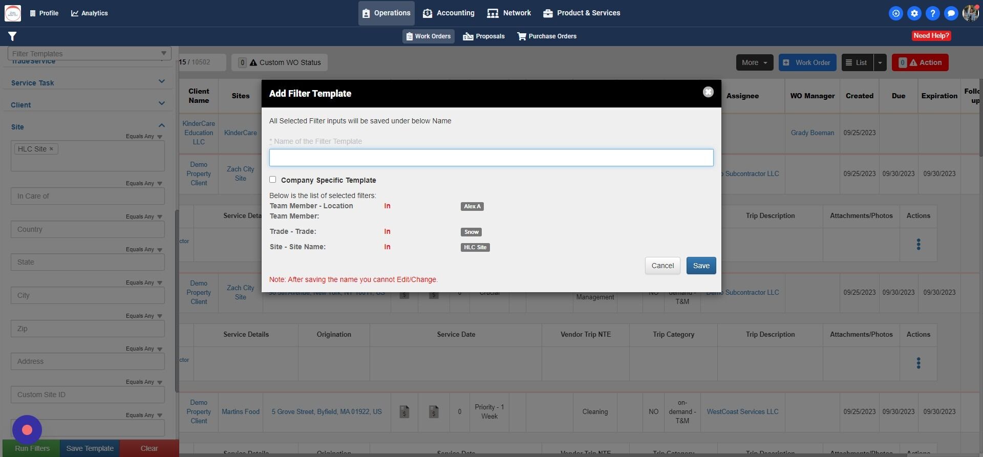 How to save the Work Order Filter Template