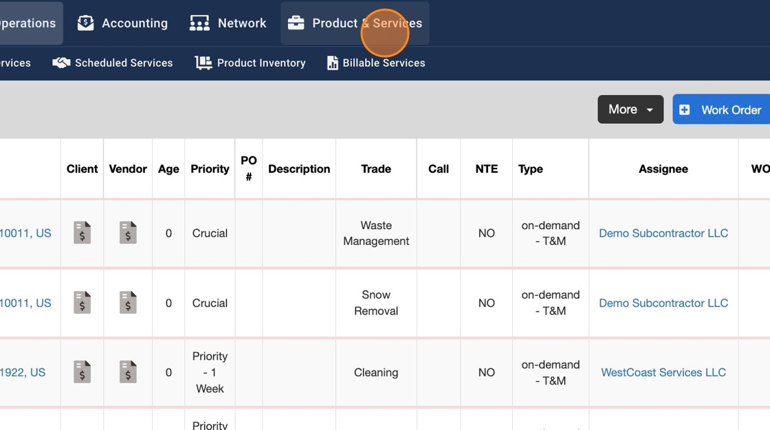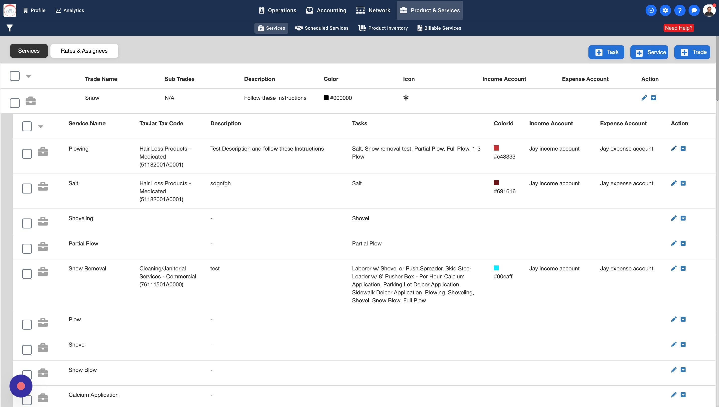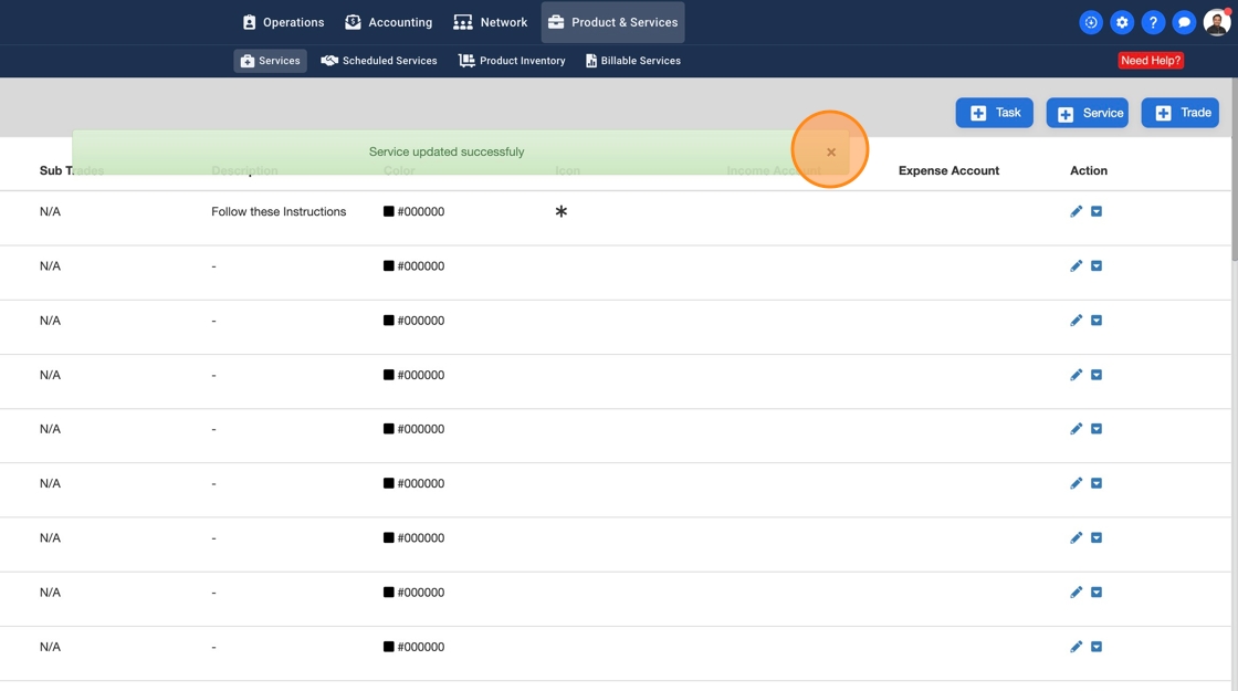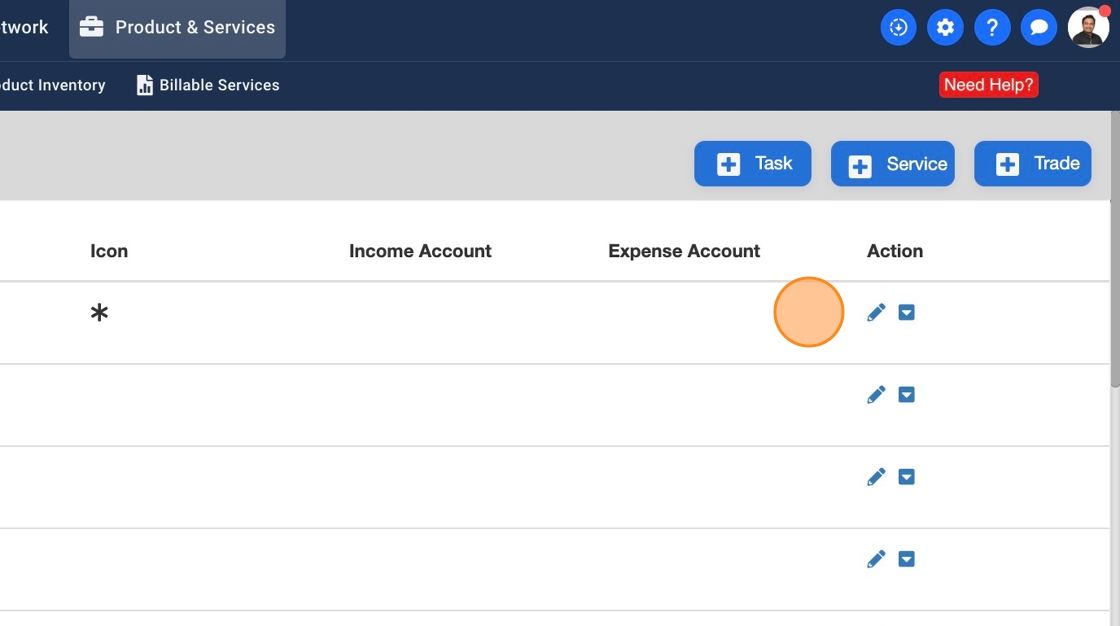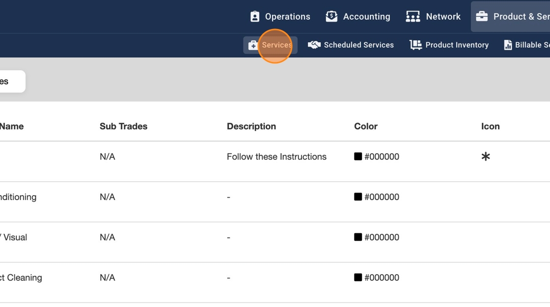 3. You should see a default list of all Trades. Click on the Trade row to view Services under the Trade
