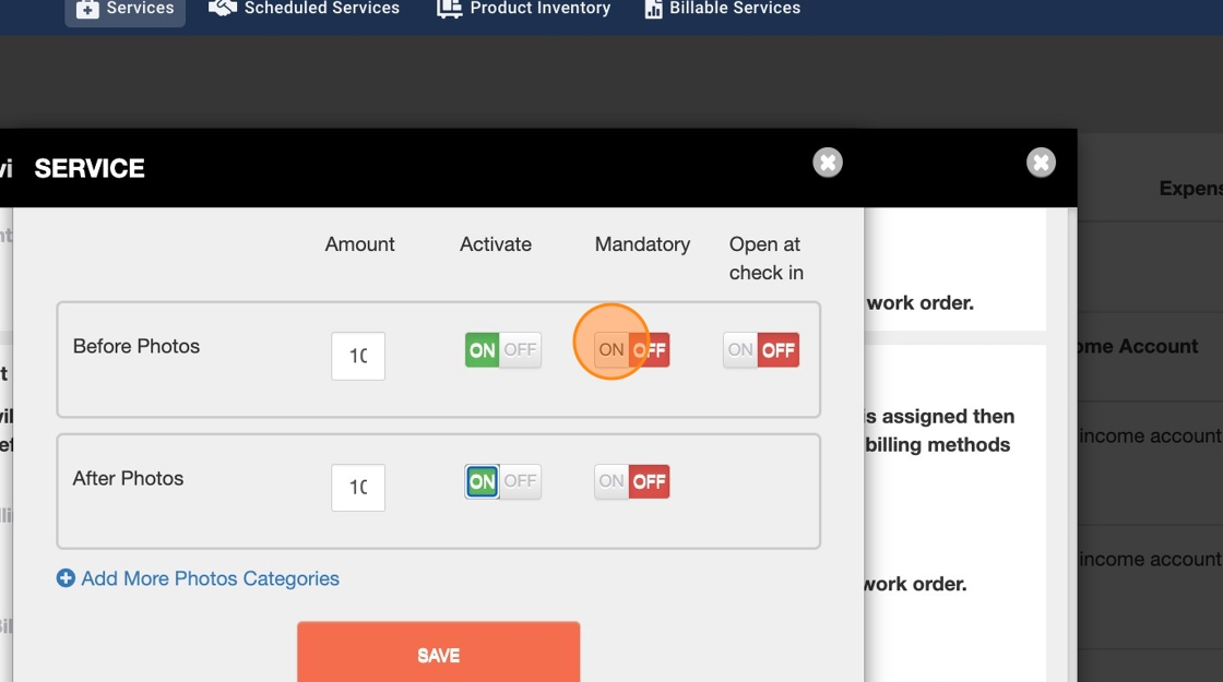 10. You can also make Before Photos as a mandatory field for your technicians on site. Click "ON" to make it mandatory