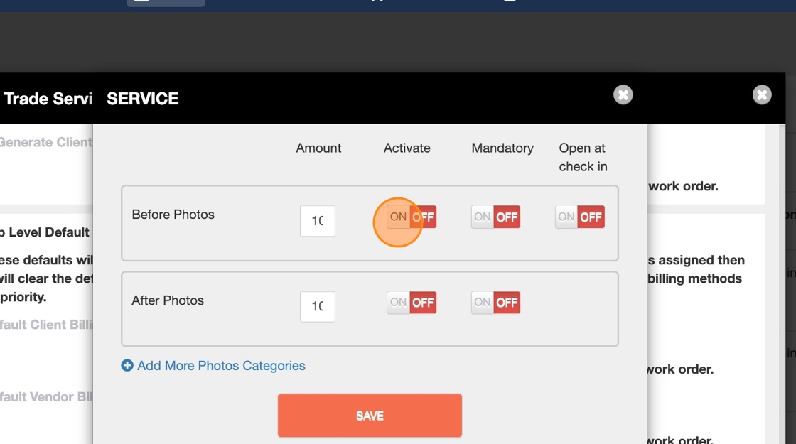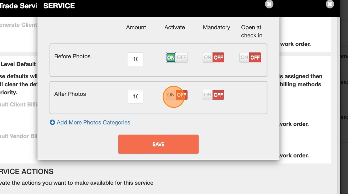 8. Click "ON" under "Activate" column for the Before Photos section to be available to your technician on site