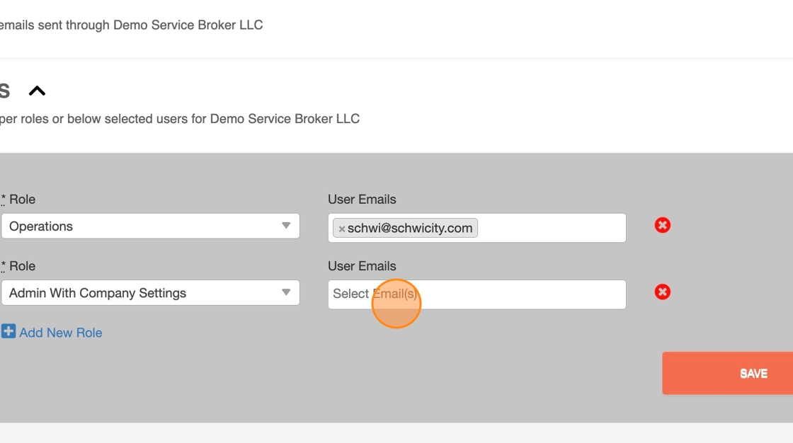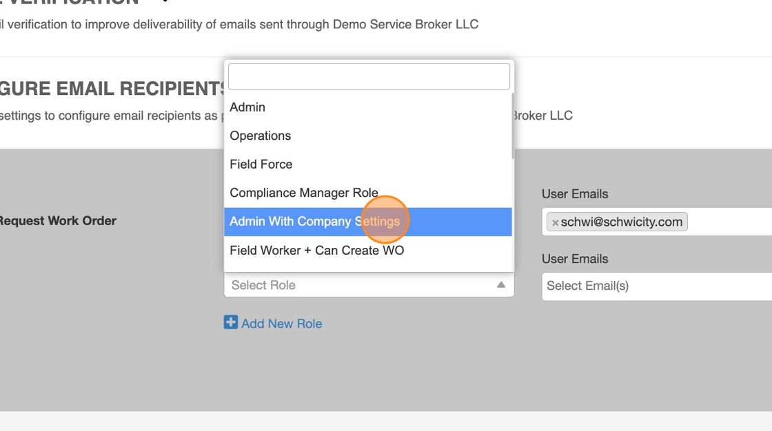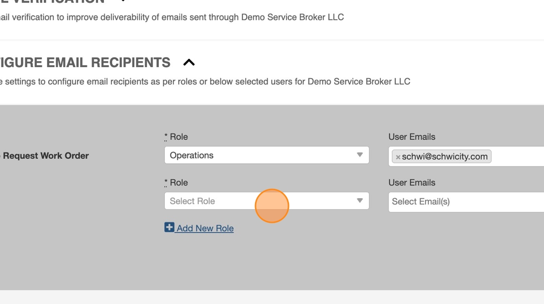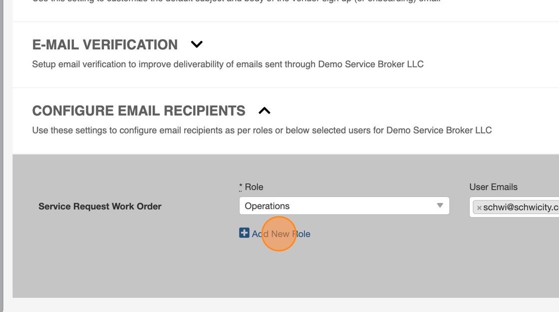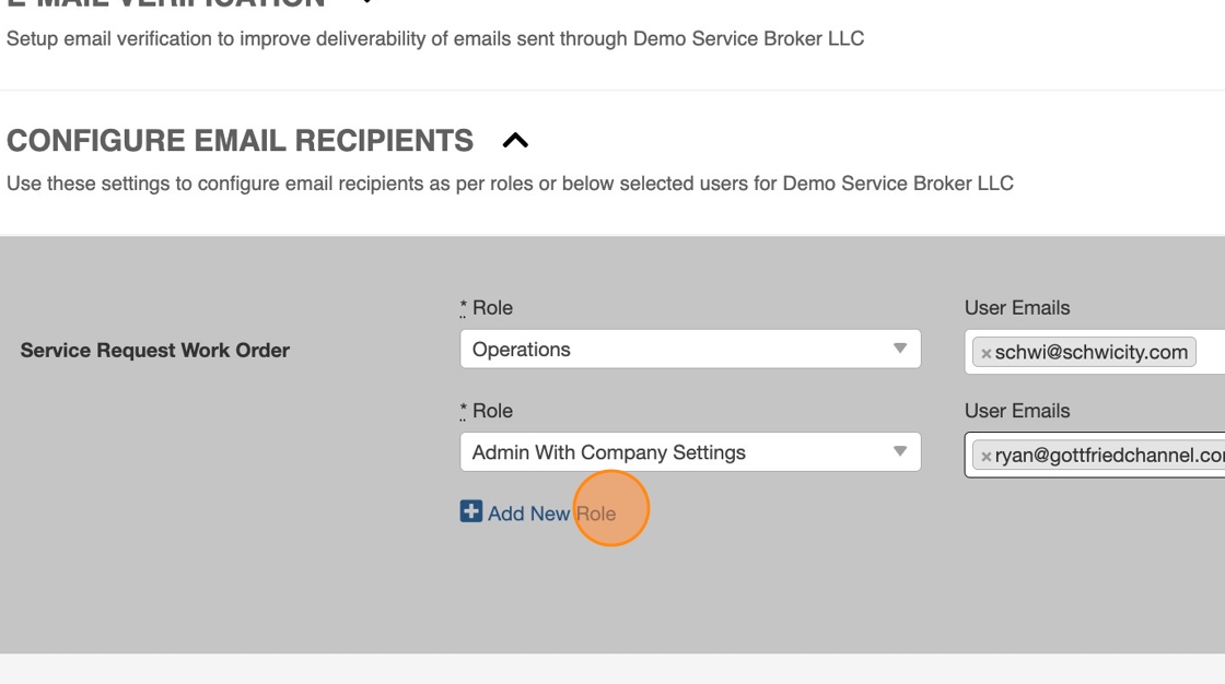 5. Click "Add New Role" to add a new Role and an email that should receive these new emails every time your Client submits a Service Request