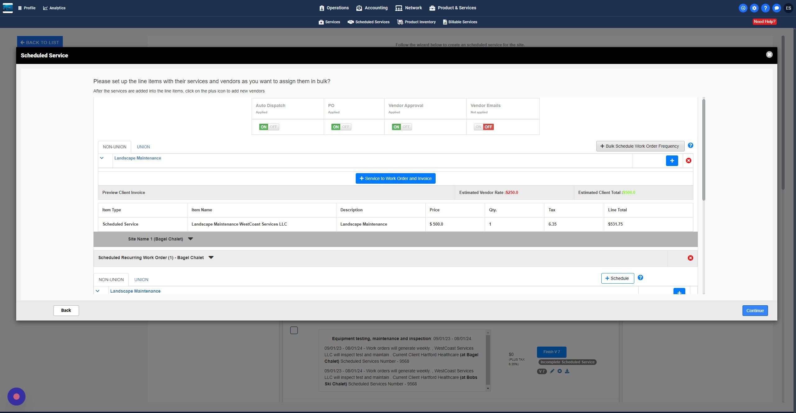20. Define your requirements then click "Service to Work Order and Invoice"
