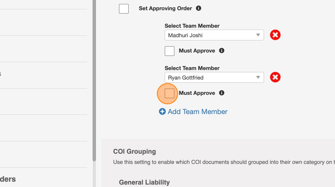 12. As soon as you select the checkbox for Approving Order you should see a priority field for every Team Member