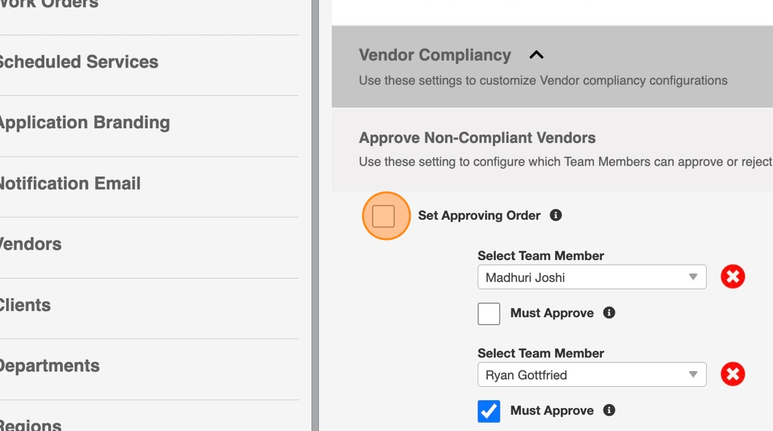 10. Click this checkbox to put a mandatory condition for the Team Member to approve non-compliant Vendors