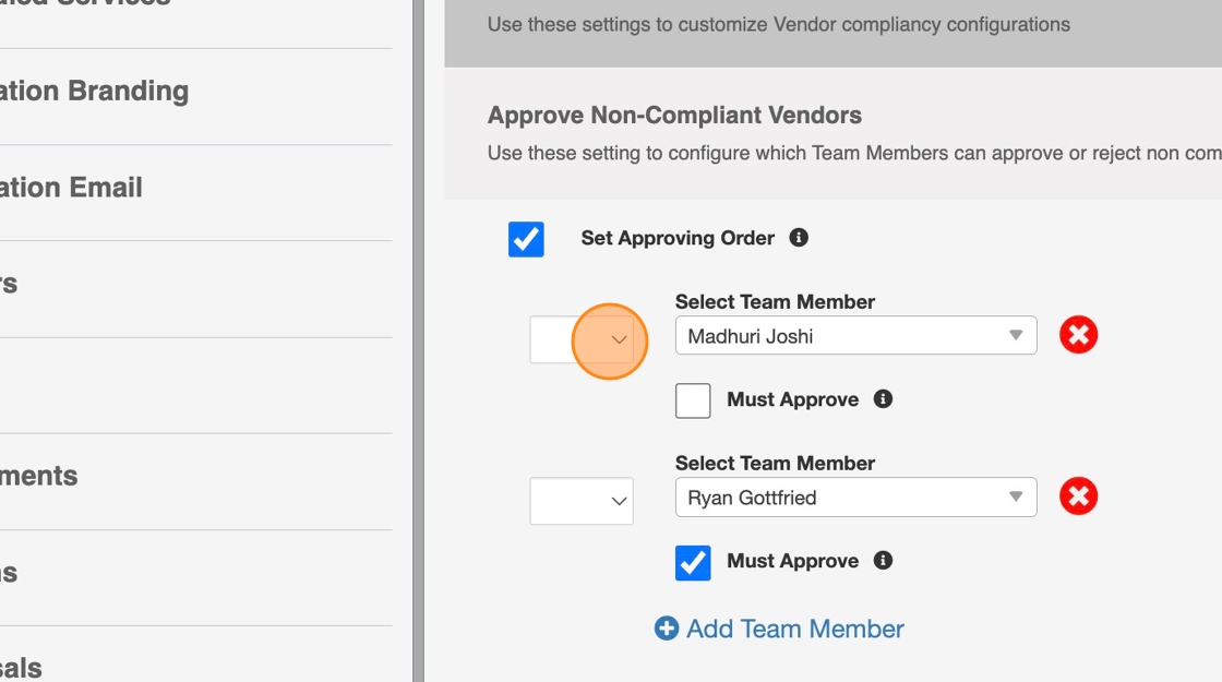 Note: Team Member in priority 2 can approve non-compliant Vendors only after the Team Member on Priority 1 approves