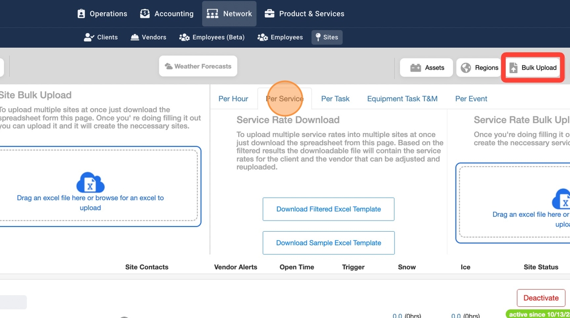 Note: It is very important that you select the correct Rate Type Tab in order to successfully upload your Per Service Rate Type