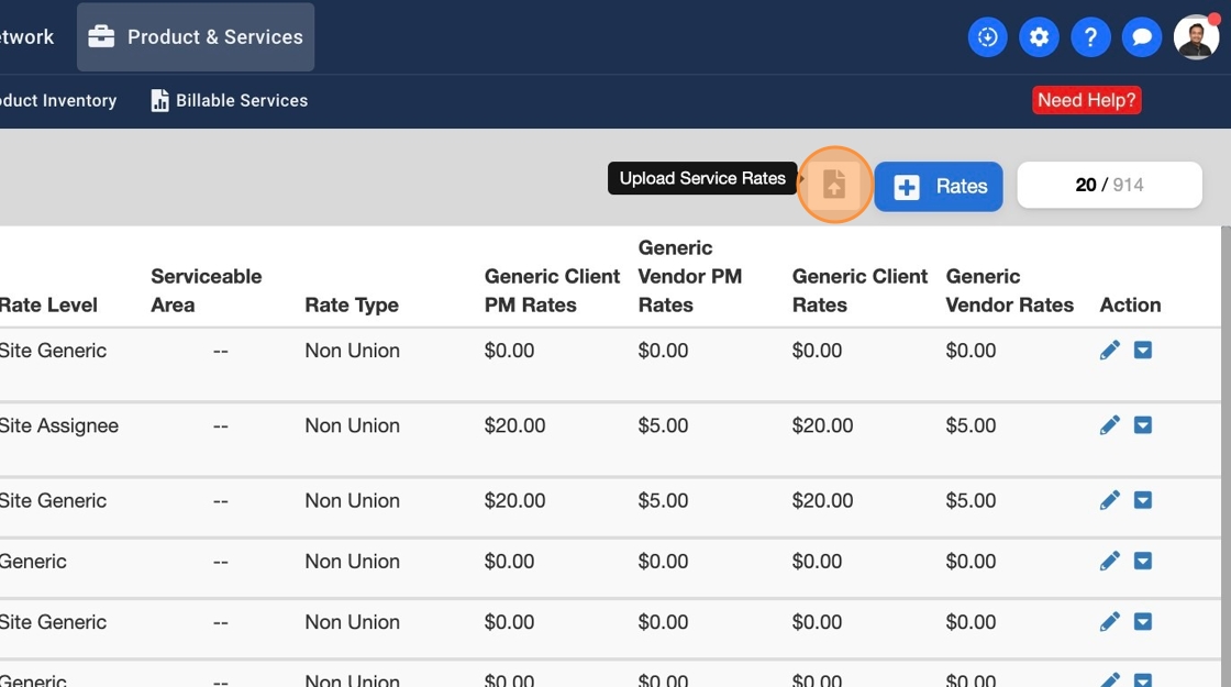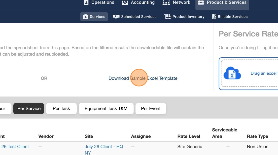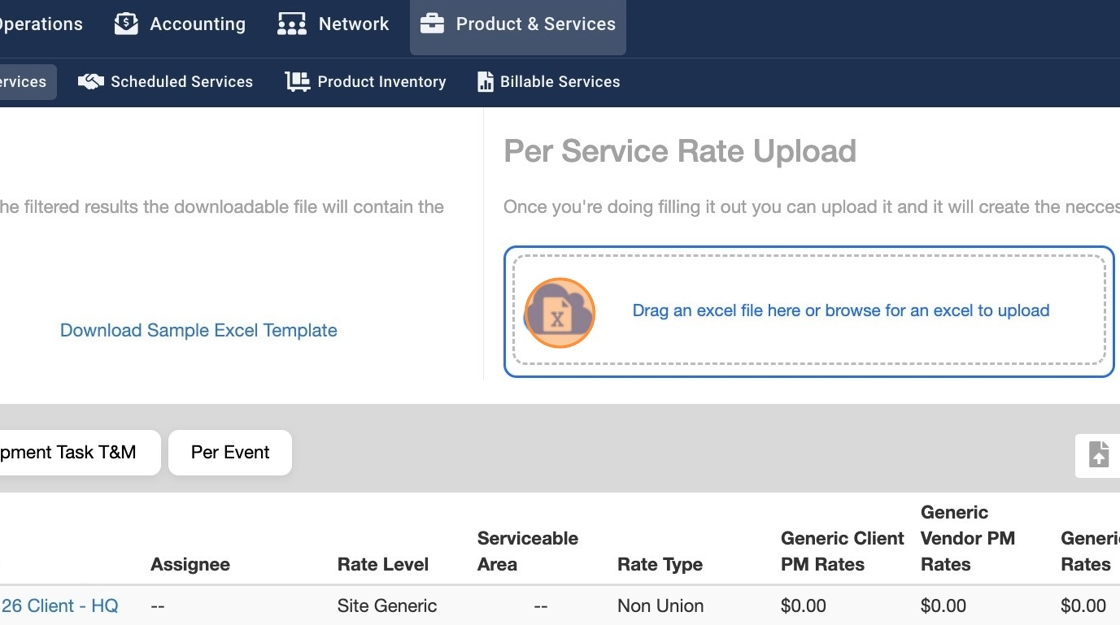 7. Click "Download Sample Excel Template" and enter your Per Service Rate Type data