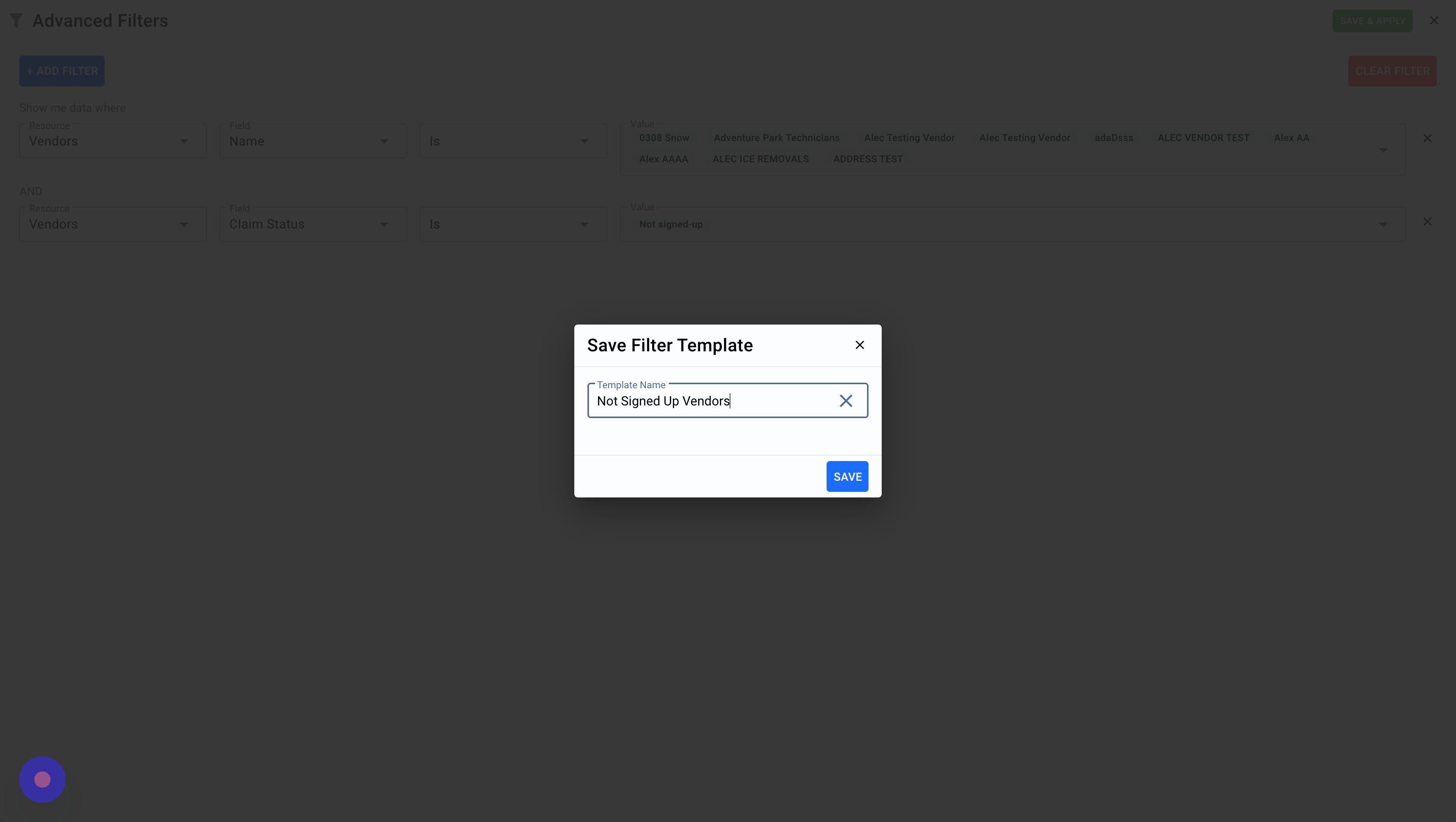 28. Click "SAVE" to apply changes. This will now edit your newly saved filter template