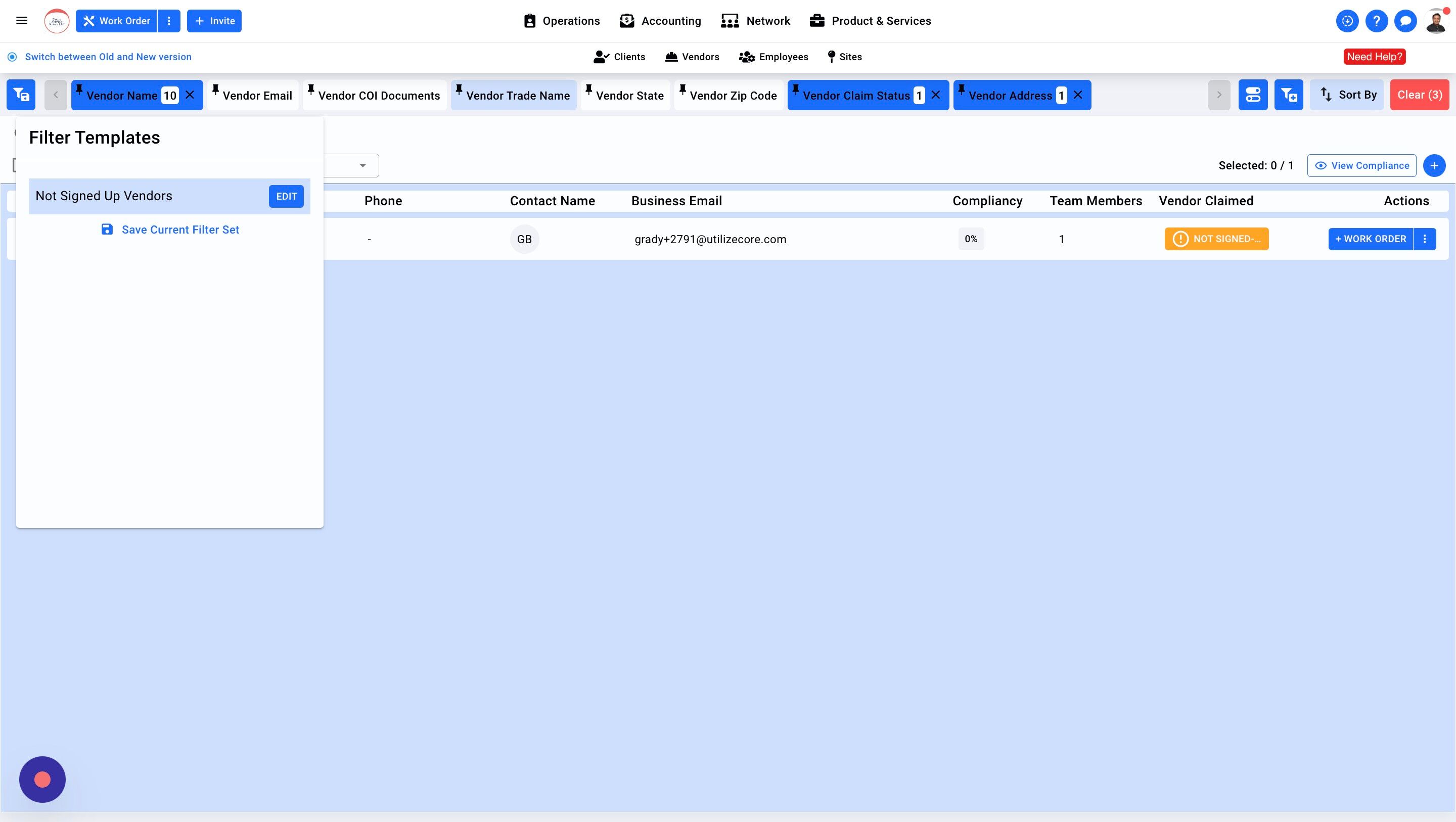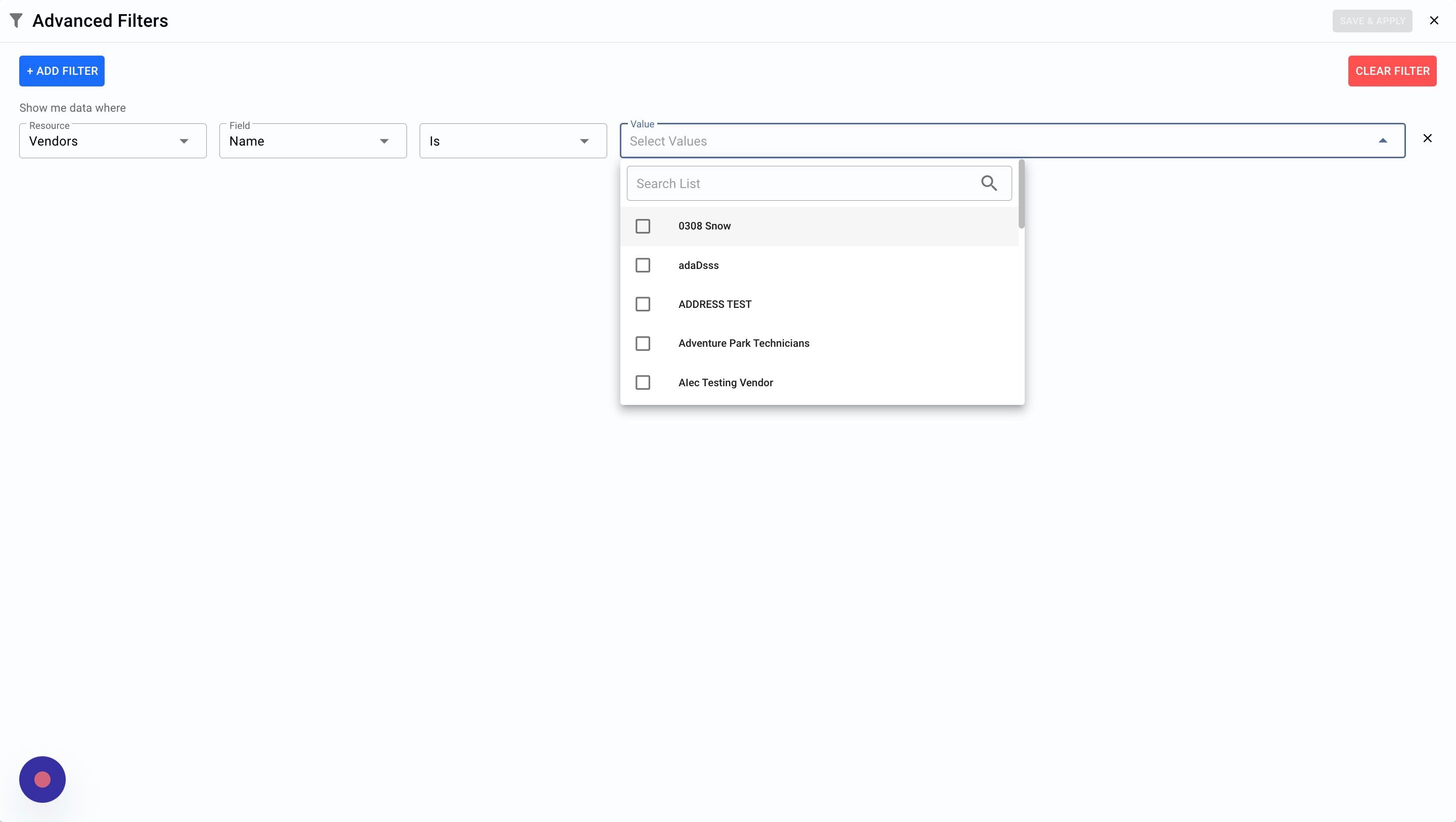 23. Click "Vendor Address" or any other filter to make changes to the saved filter template
