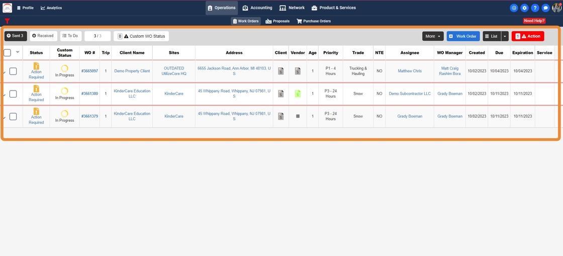 7. You will now see the "Work Order" as per the "Trip Status"