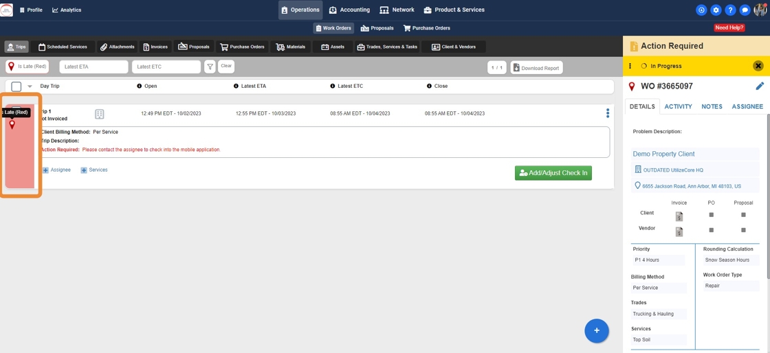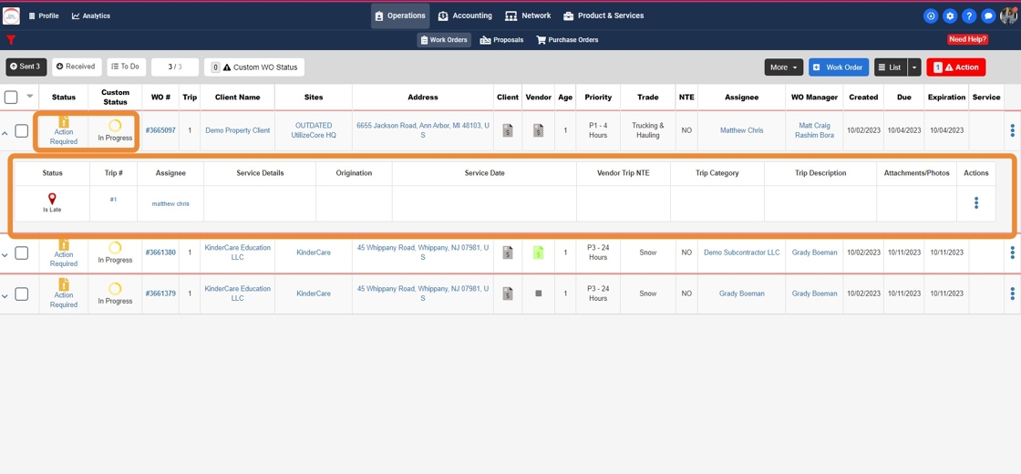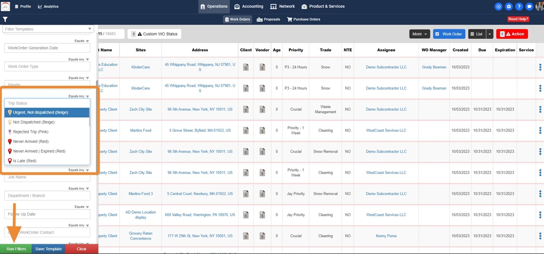 How to use different Trip Statuses in filters to view Work Orders