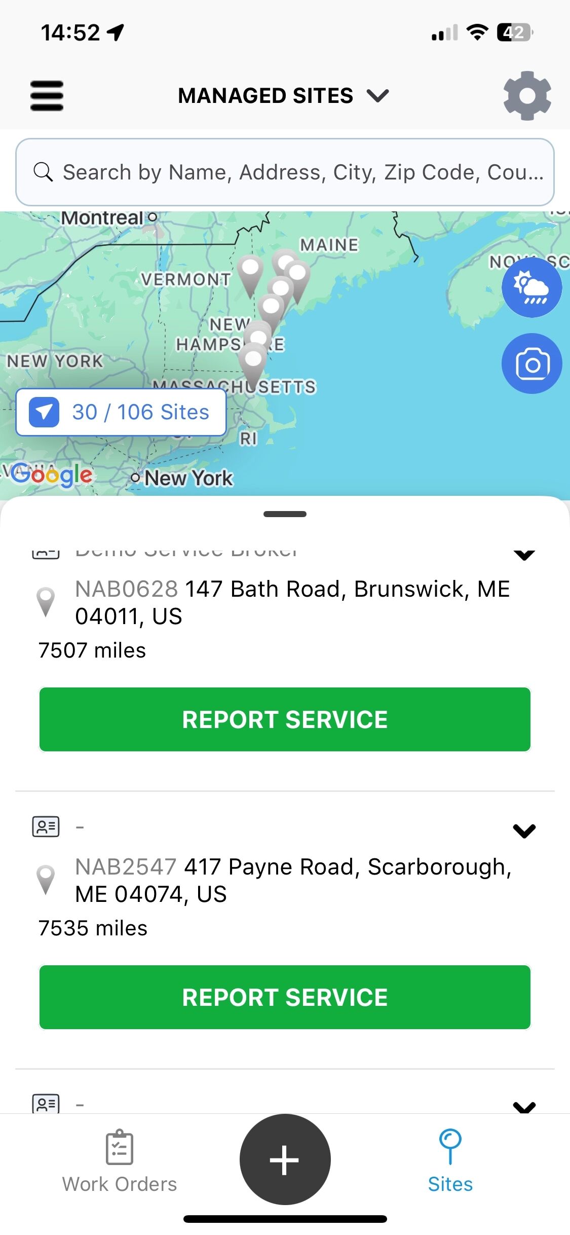 3. Select the <Work Order> Icon to see all the Work Orders and Trips associated with the selected Site