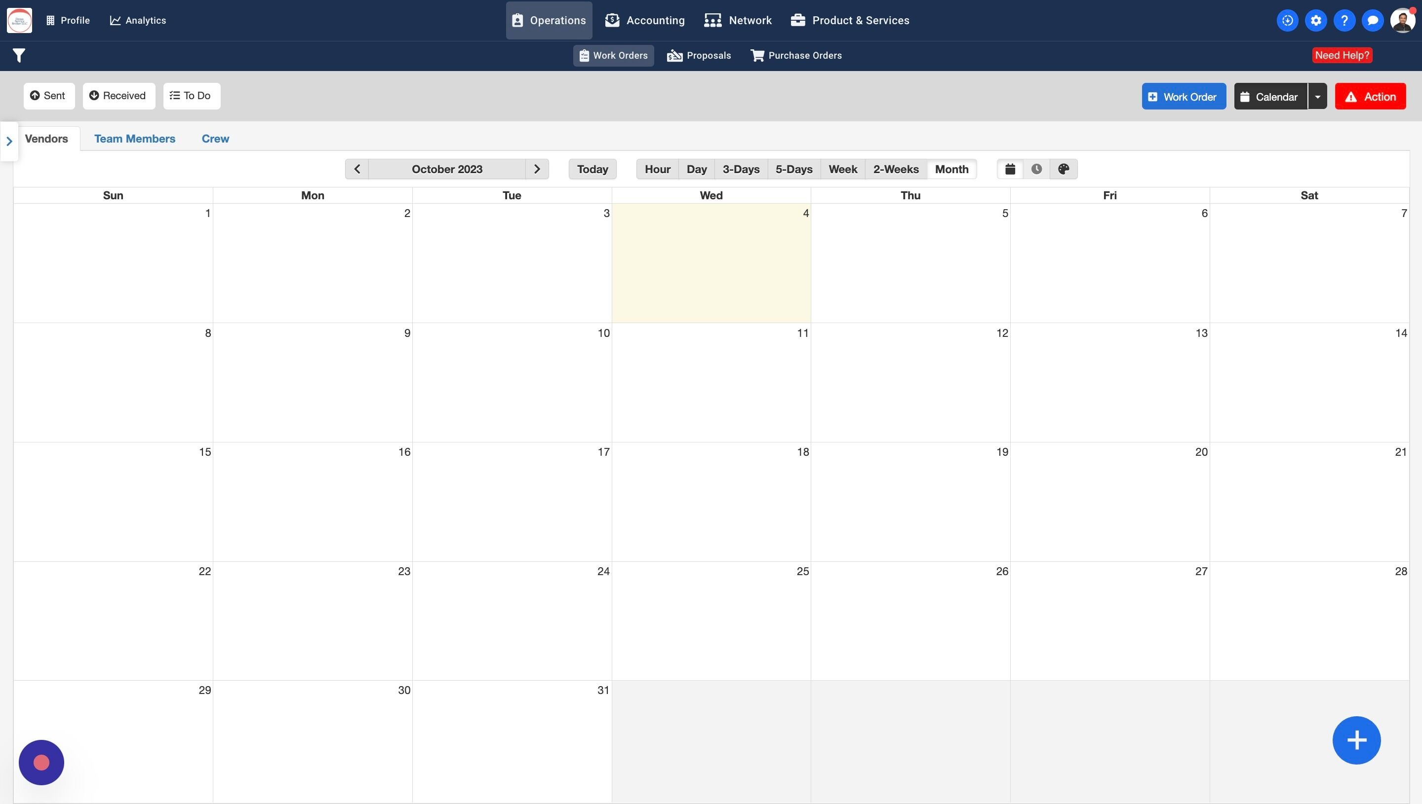 Switch between views for vendors, team members, and crews, making it easier to track and manage work orders