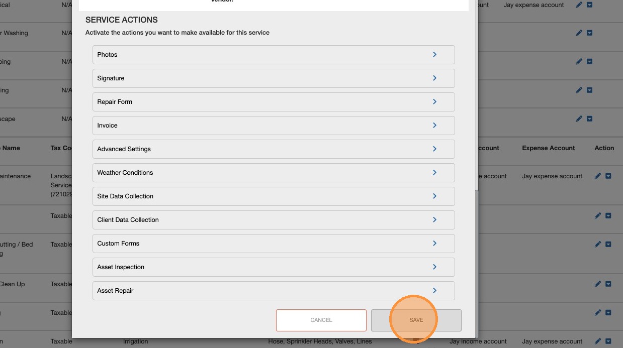 7. Click to "Save" the Service