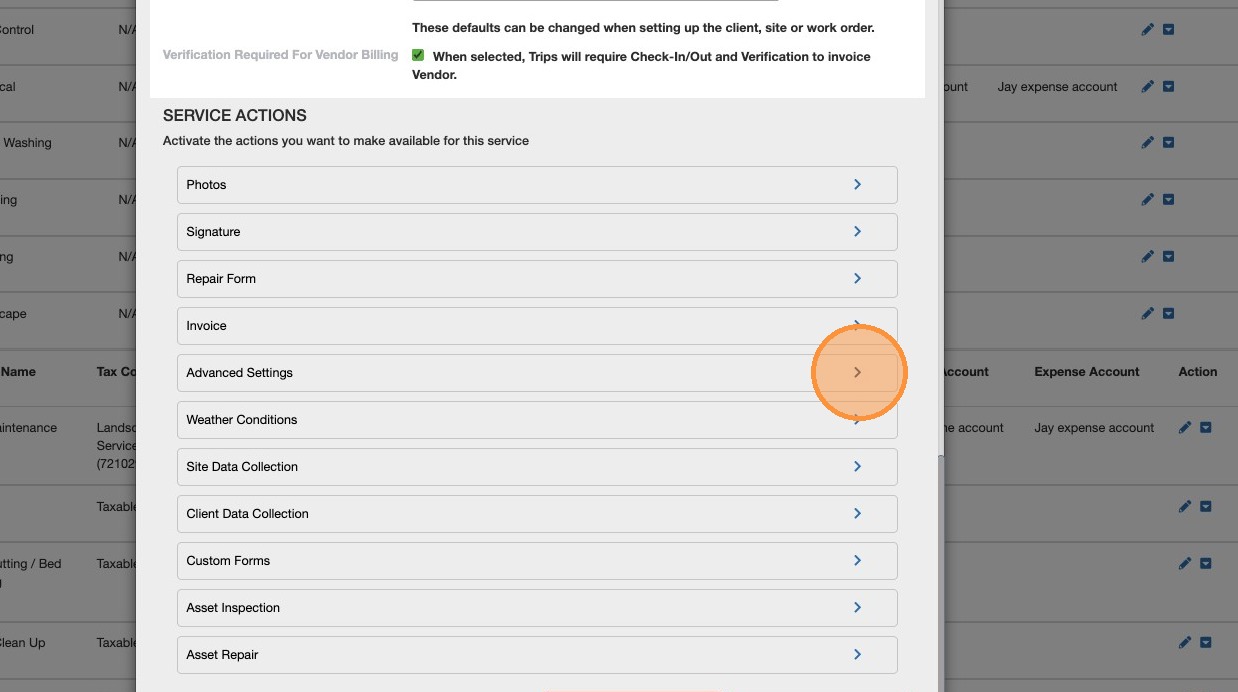 4. Scroll down to select the Service's 'Advanced Settings'