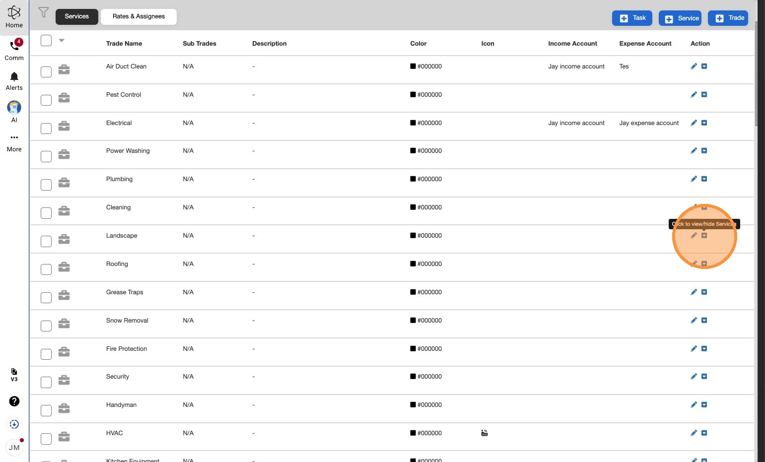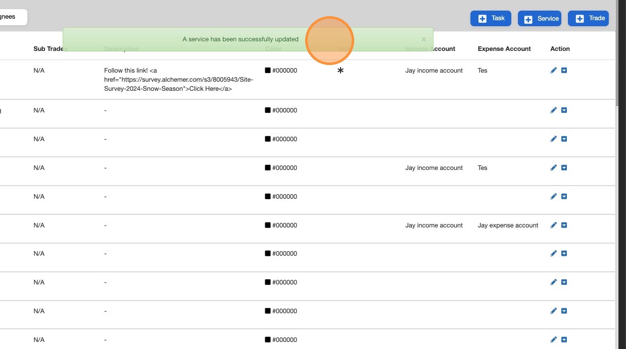 2. Expand your Trade list to find the Service you'd like to update. Must Return is configured from the Service.