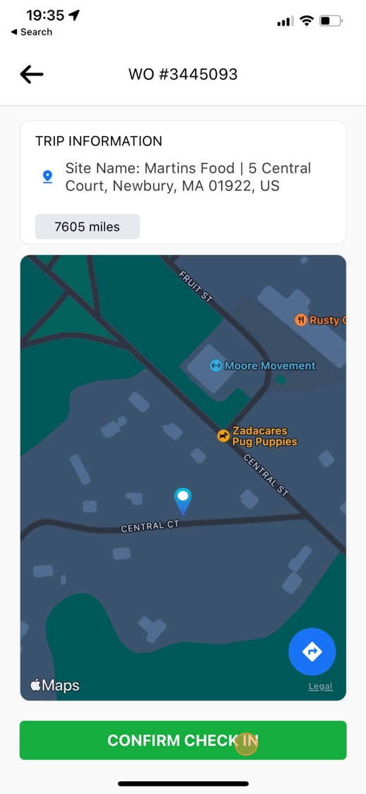 9. La aplicación mostrará tu ubicación en tiempo real y deberás confirmar el registro de entrada.