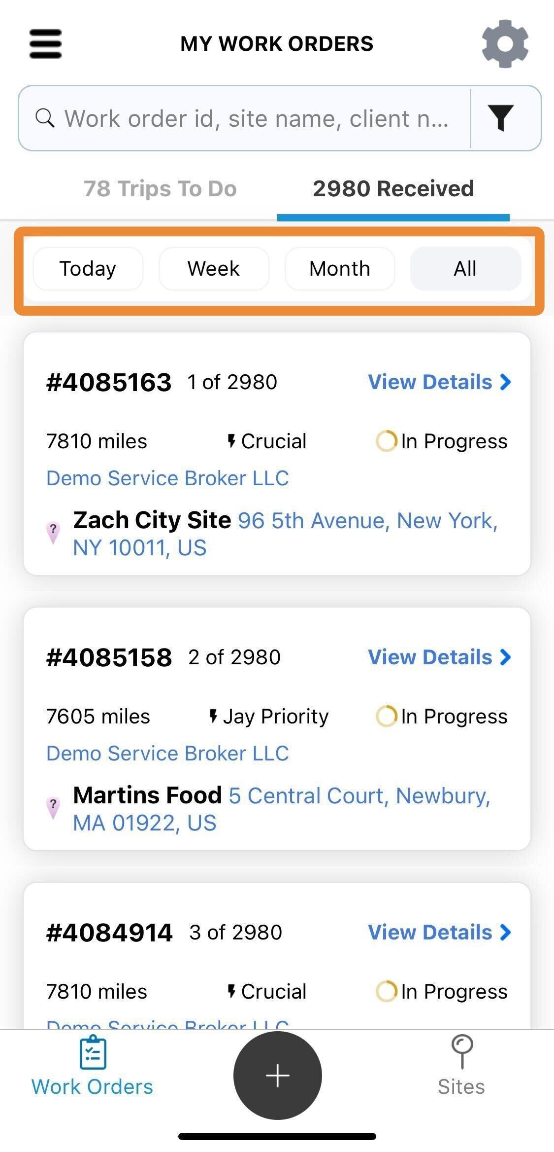 Alternativamente, puedes usar el filtro "Todo" para obtener una visión general completa de todas las Órdenes de Trabajo.