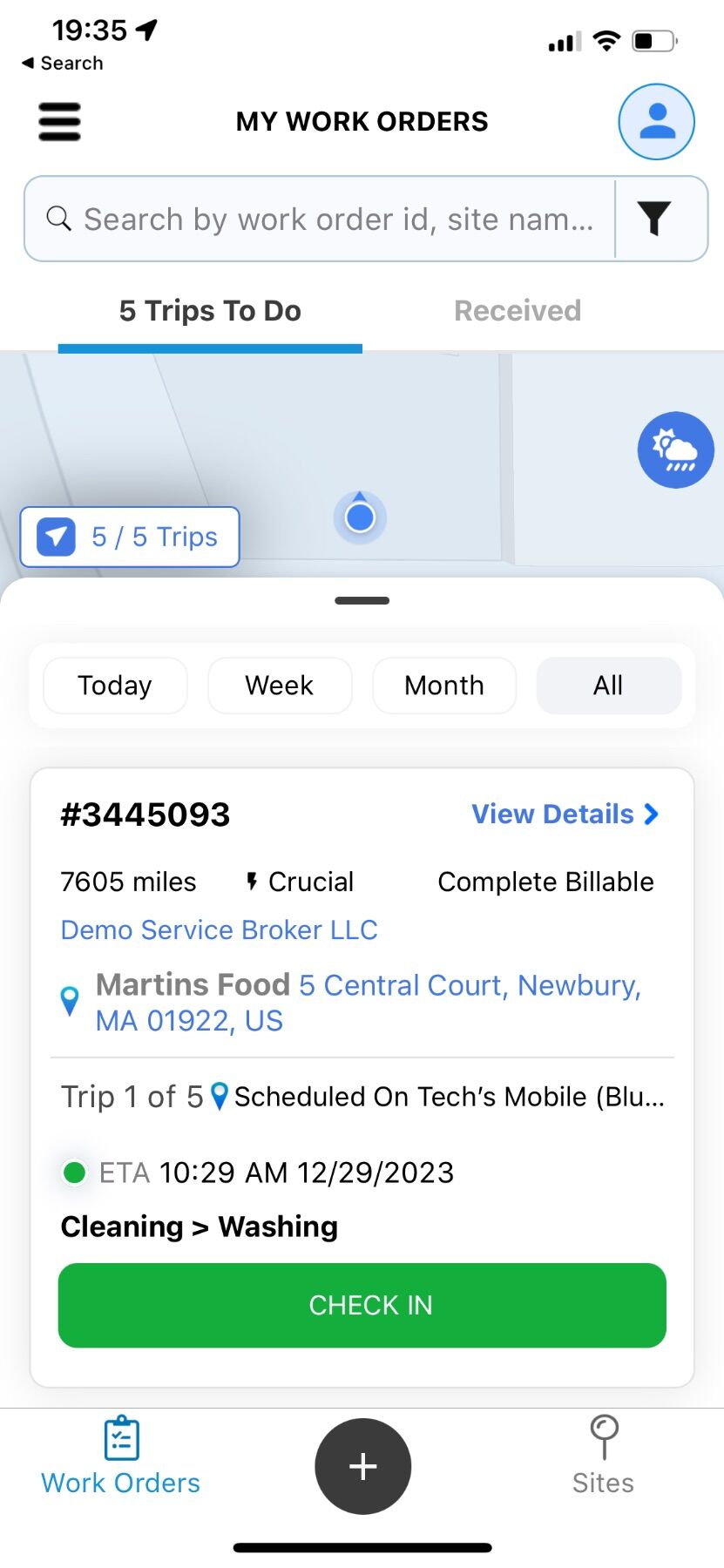 1. Al iniciar sesión en la aplicación móvil, serás dirigido a la sección "Viajes por hacer", donde se muestran todas las Órdenes de Trabajo pendientes por completar.