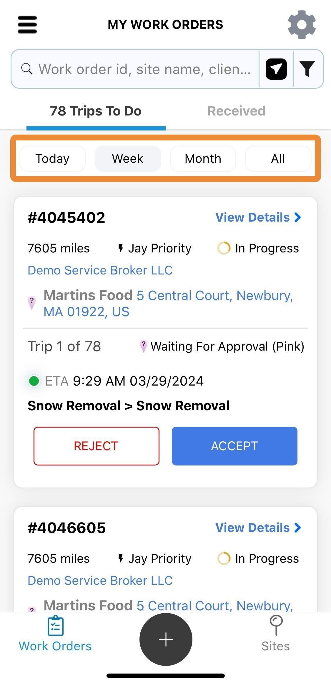 2. Dentro de la sección "Recibidas" de la aplicación, puedes acceder tanto a las Órdenes de Trabajo actuales como a las completadas.