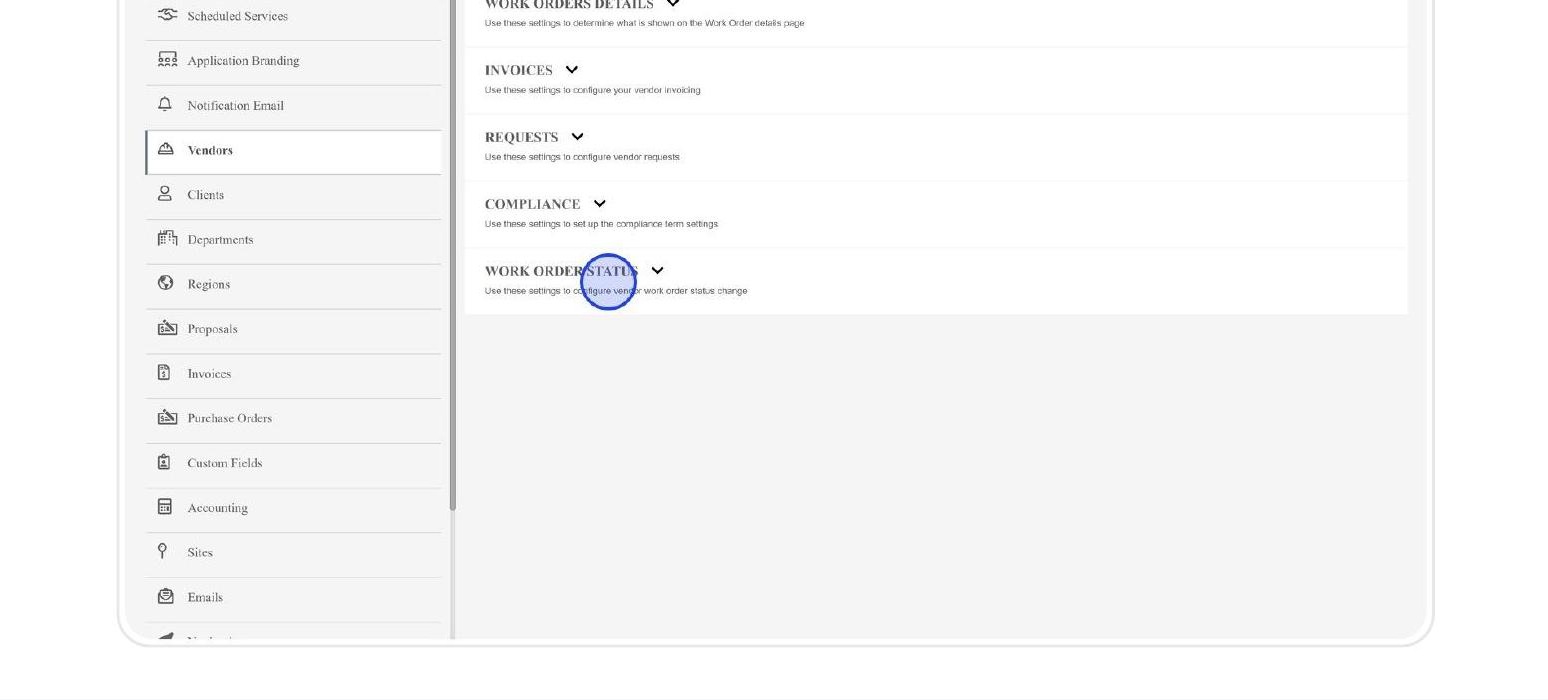 Navigate to: Main Menu > Settings > Vendors > Work Order Status