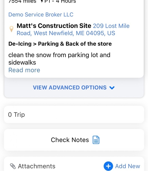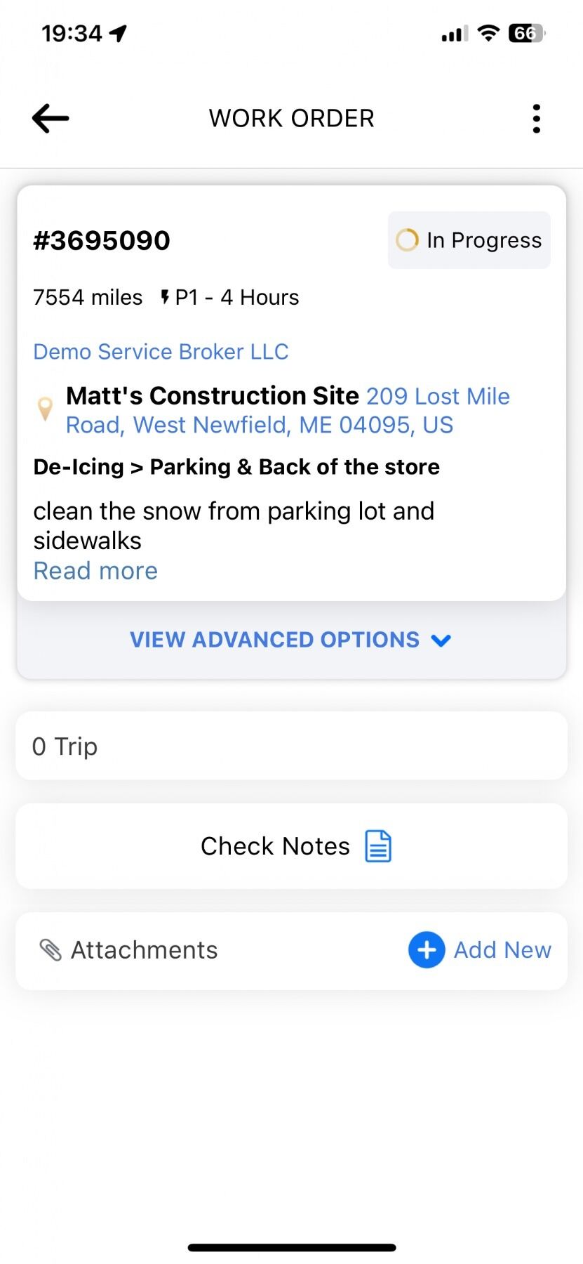 8. You will be directed to the Work Order details page. You can add attachments or new notes by clicking on the "Check Notes" field