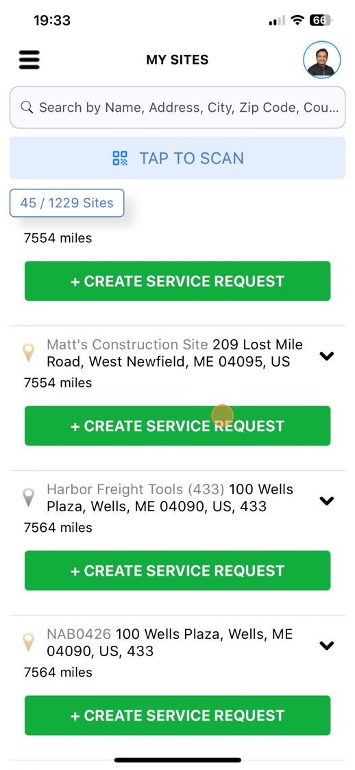 1. Click on the green button "+ CREATE SERVICE REQUEST"