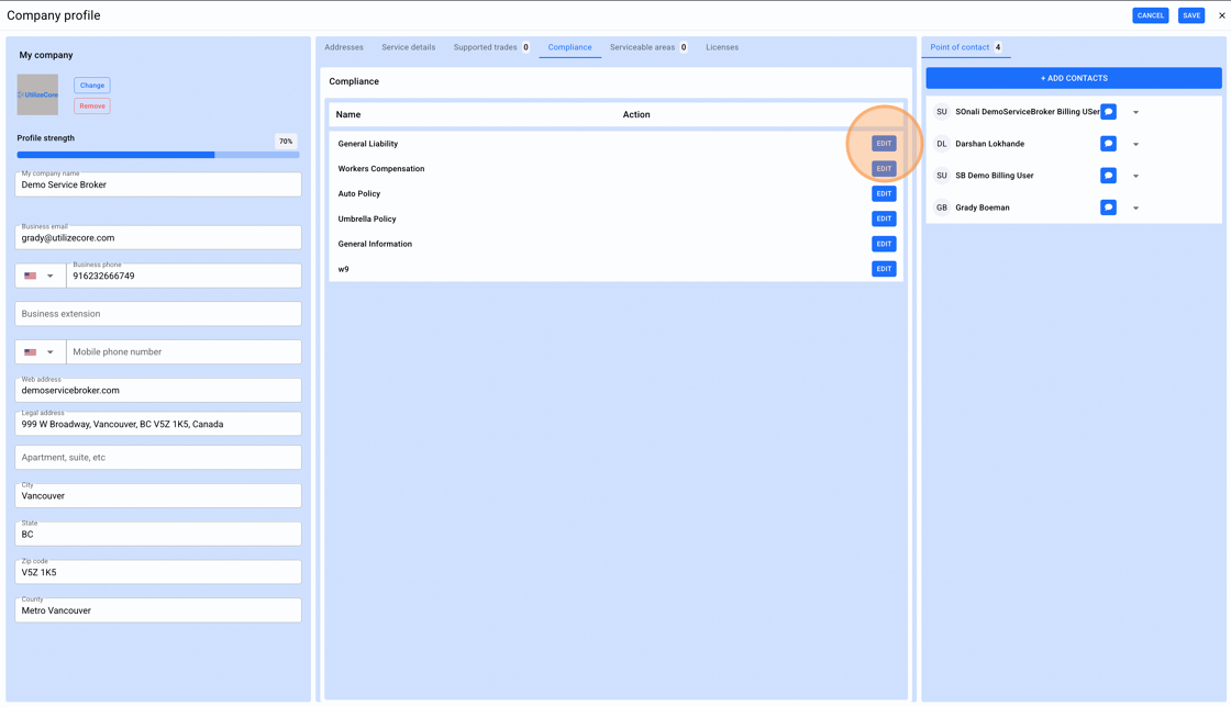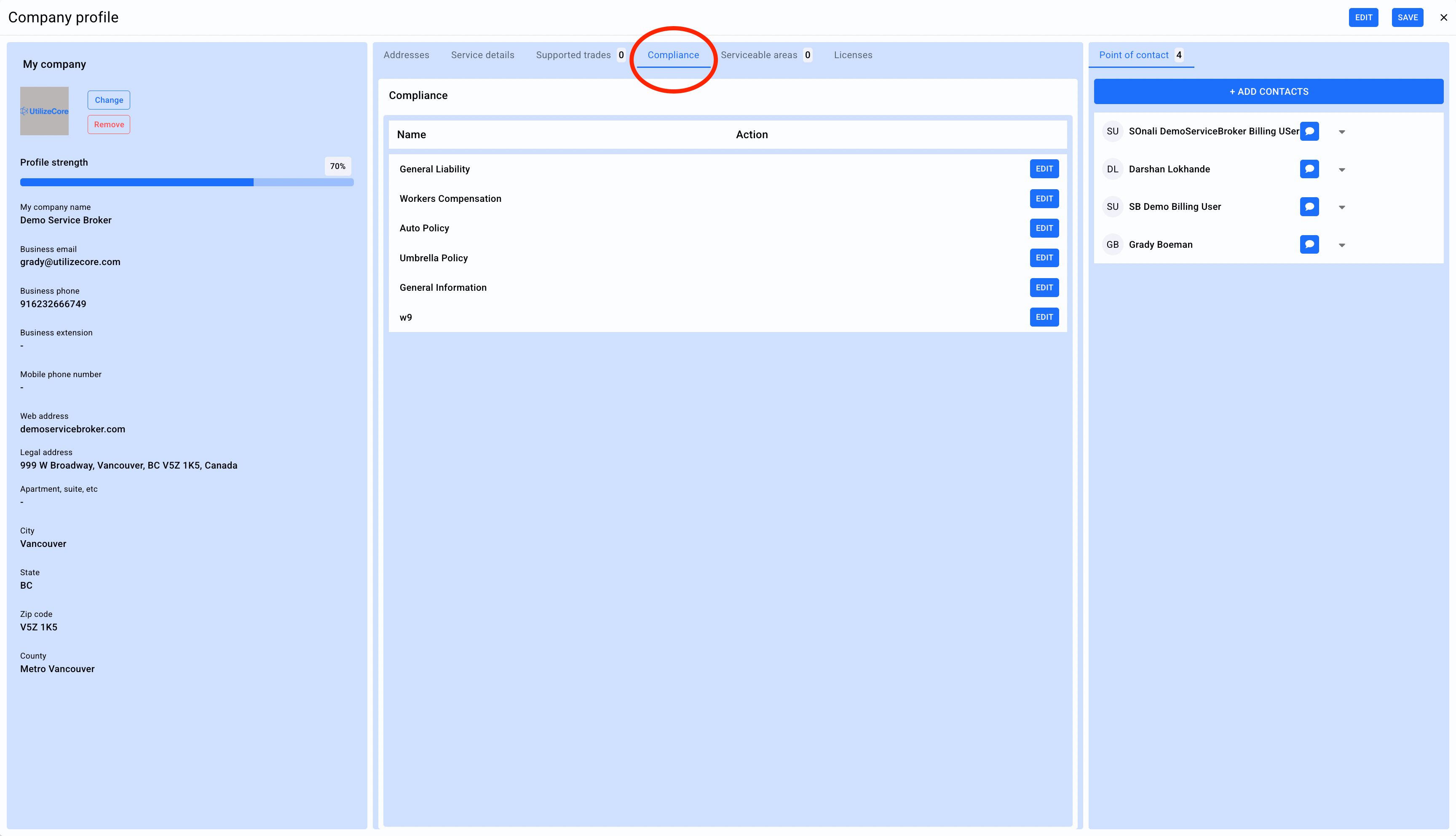 2. Click on Edit on the top right corner and click on Compliance tab in the middle panel