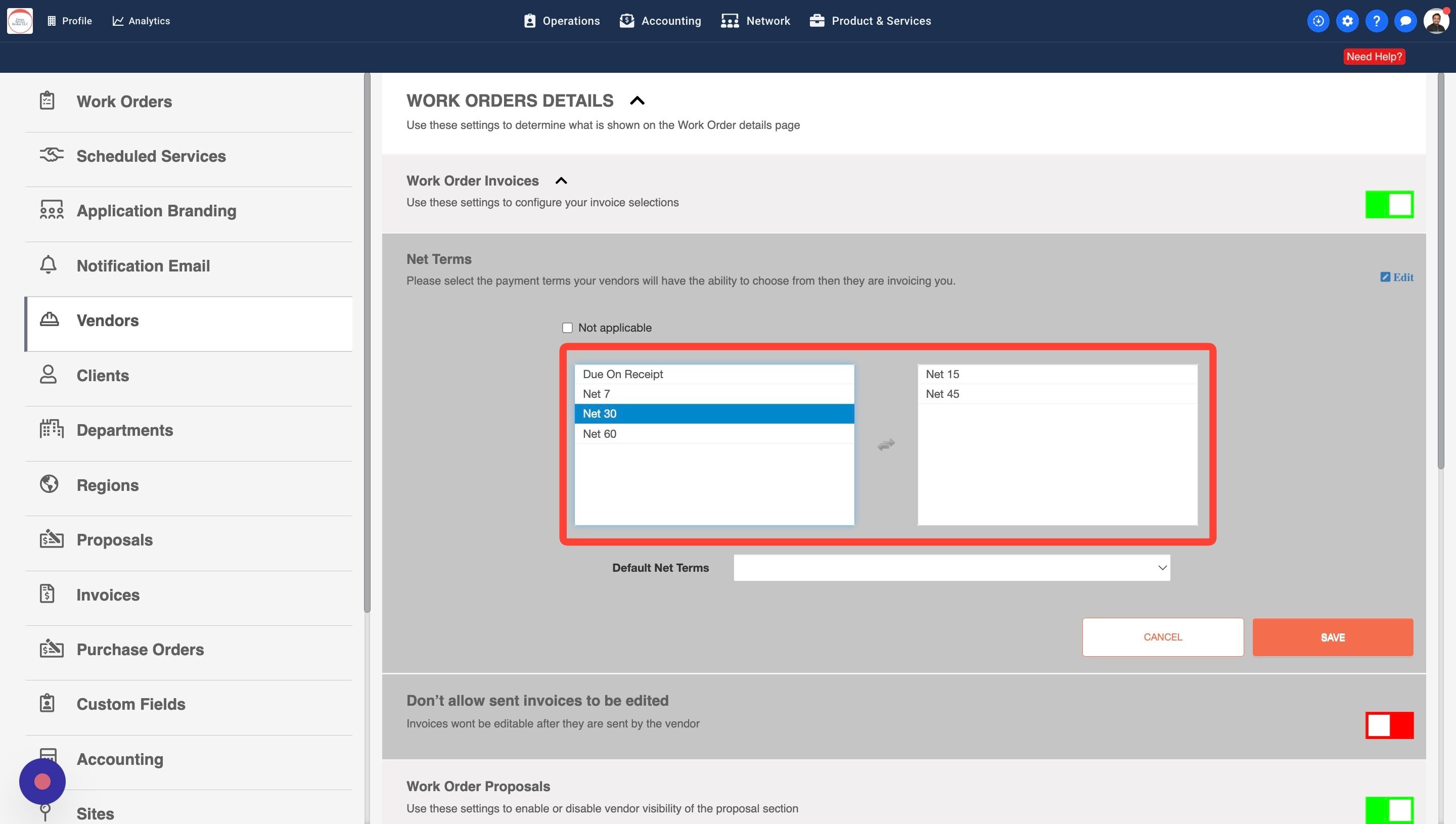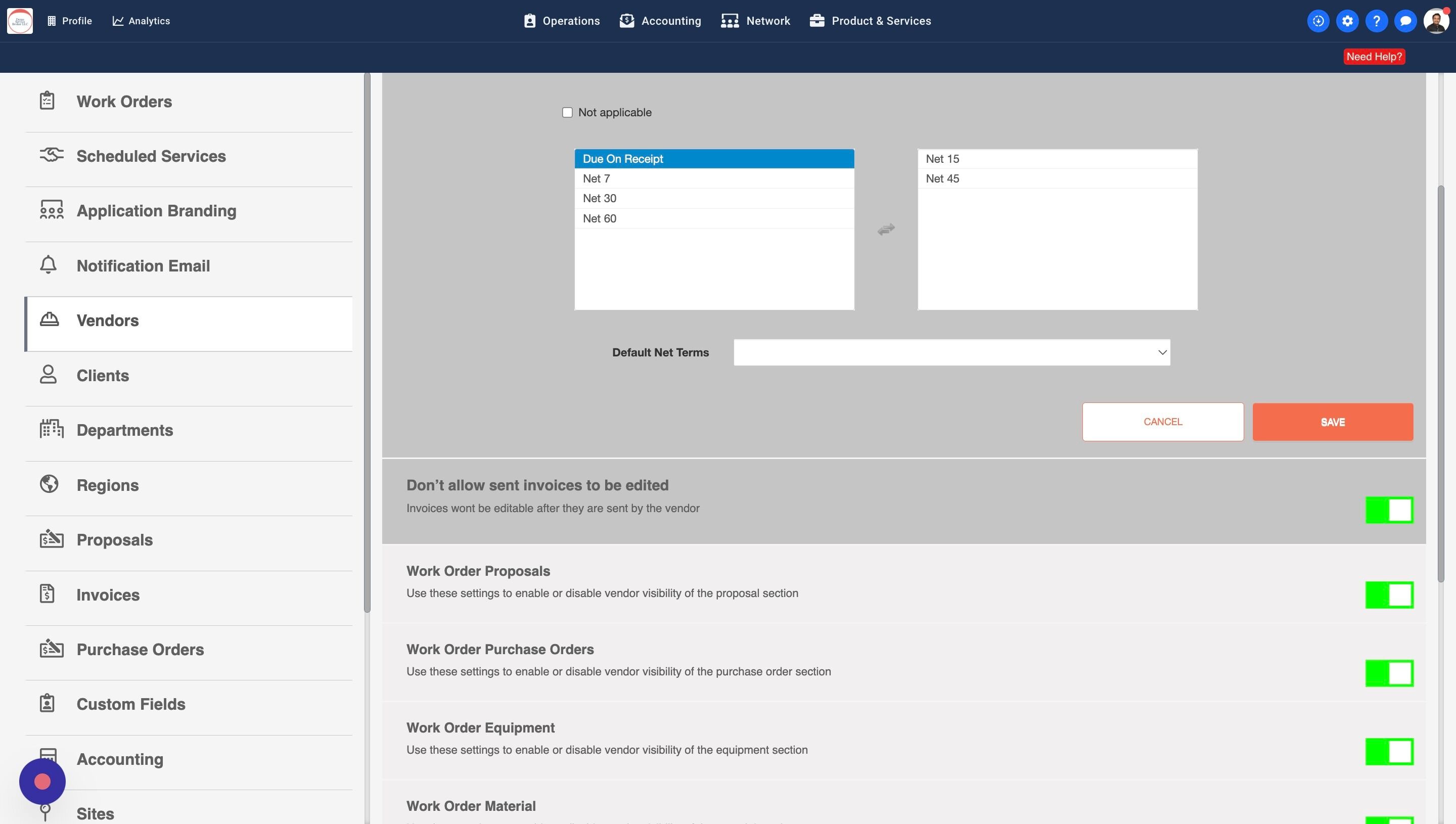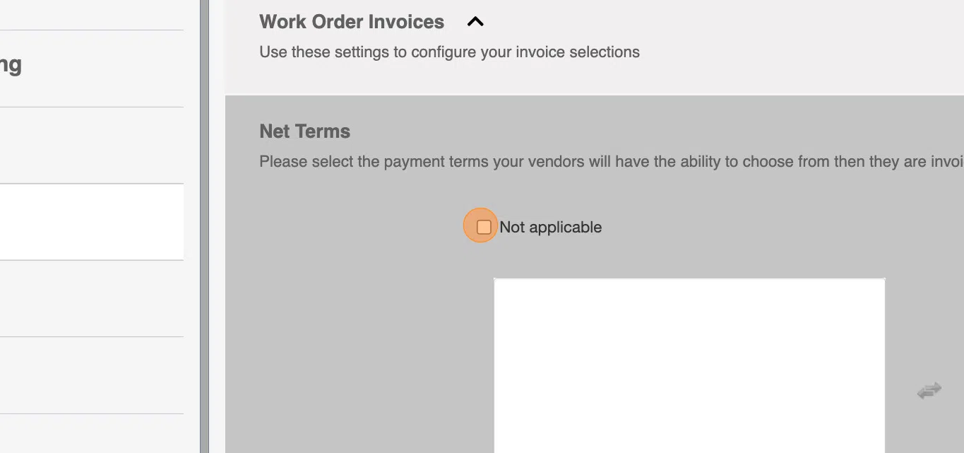 6. Turn this switch on to setup Net Terms on Vendor Invoices