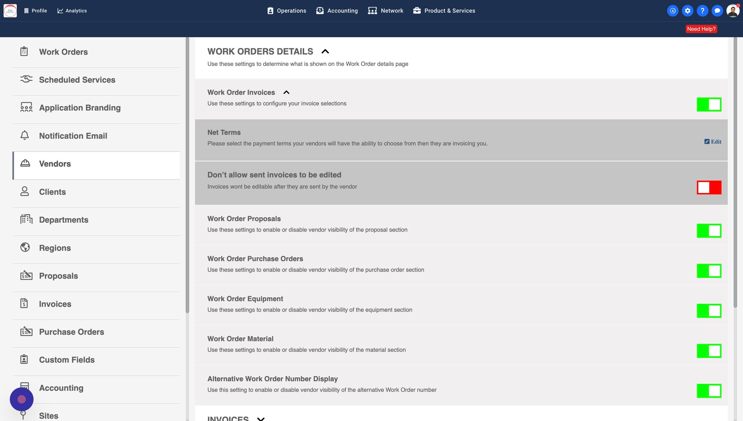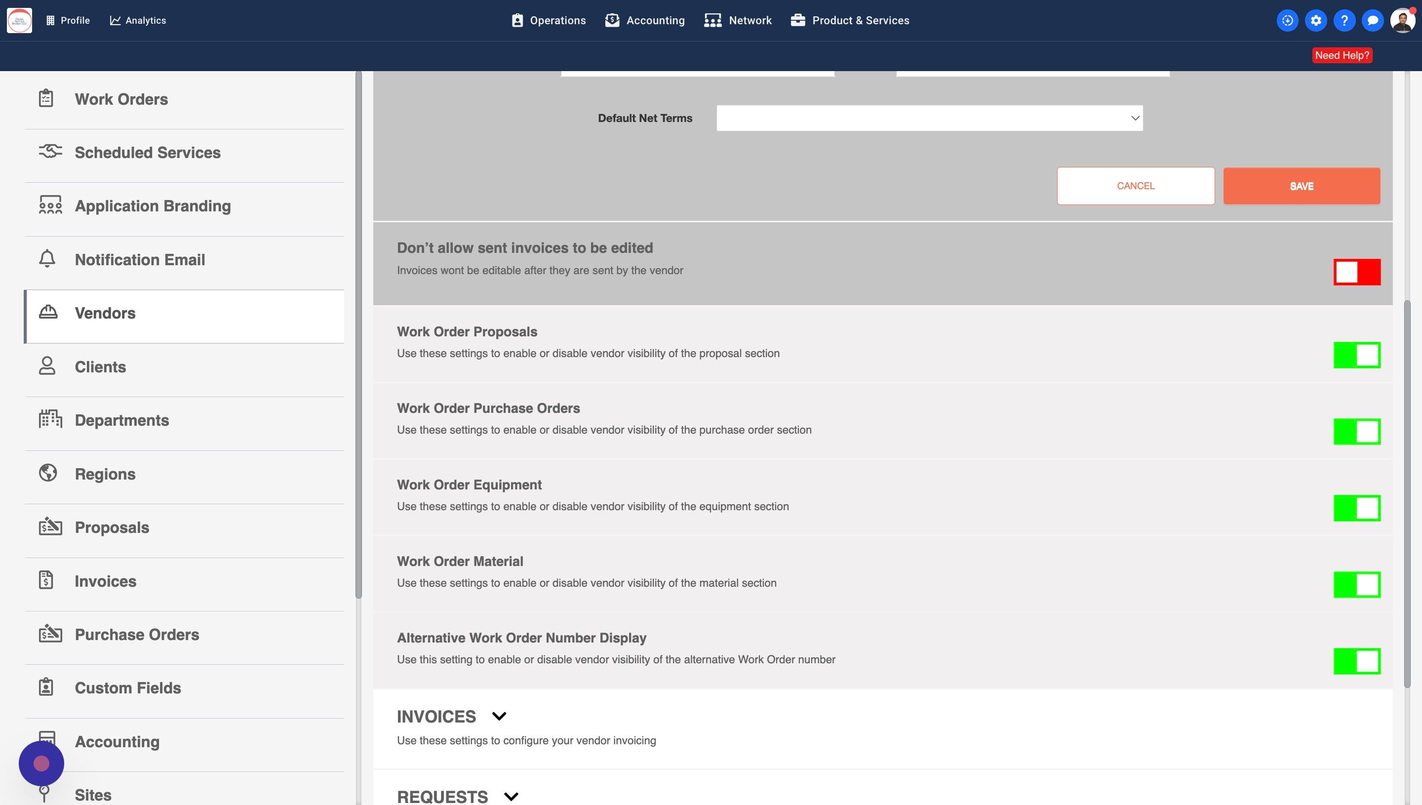 12. Turn on the switch "Don't allow Sent Invoices to be edited". This will stop your Vendors from editing any Sent Invoices