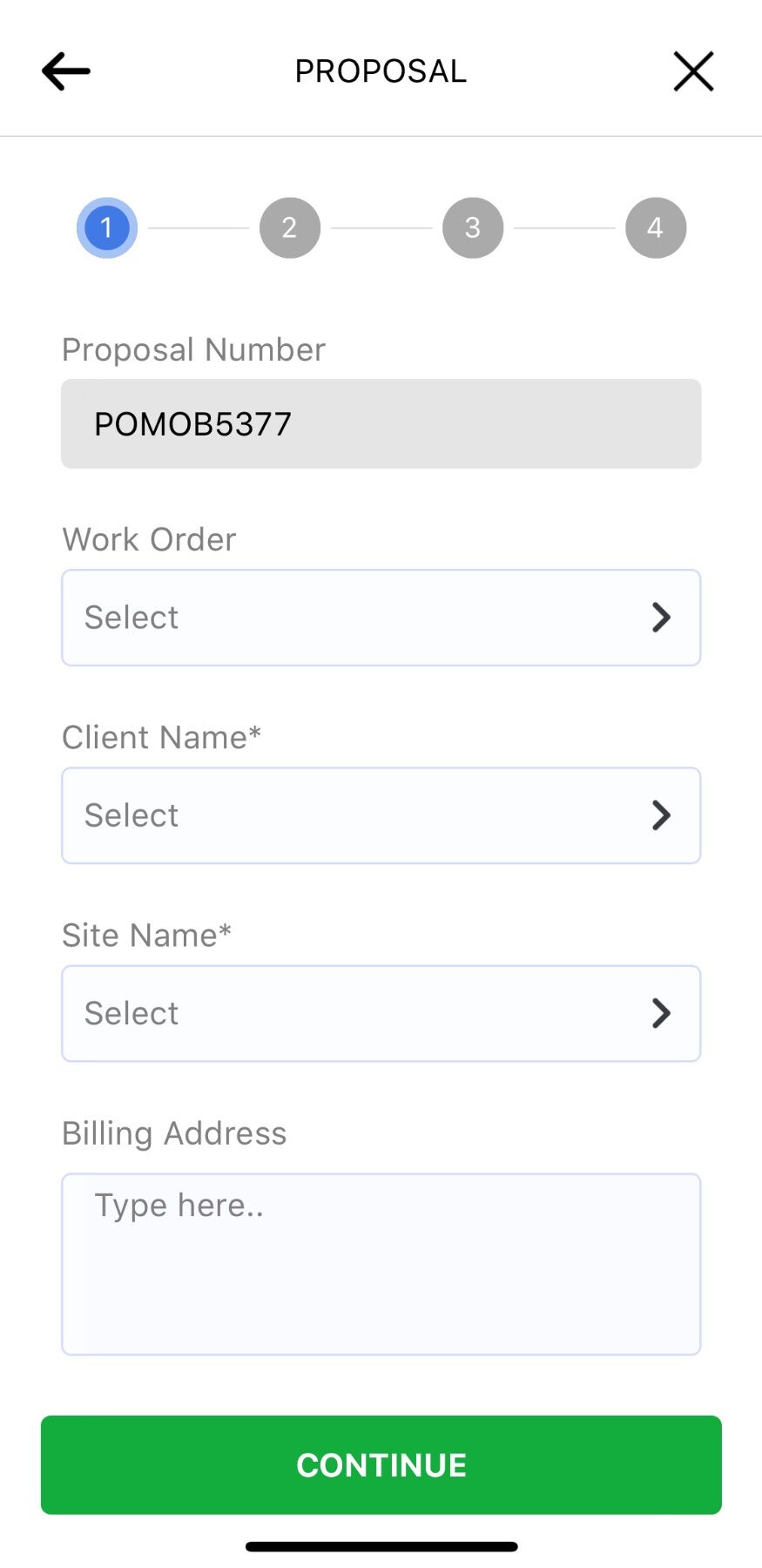 4. You can add a new Proposal by selecting the Client, and Site. Click on the Client Name field